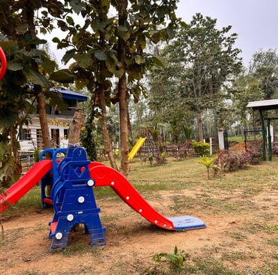 A 5,000 sq ft natural playground with 12 different activities for younger guests